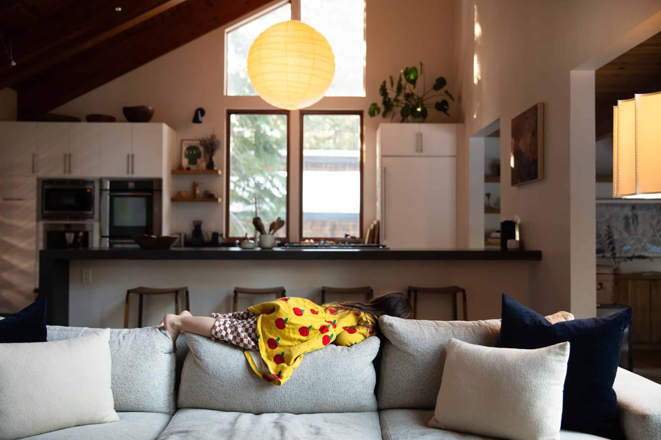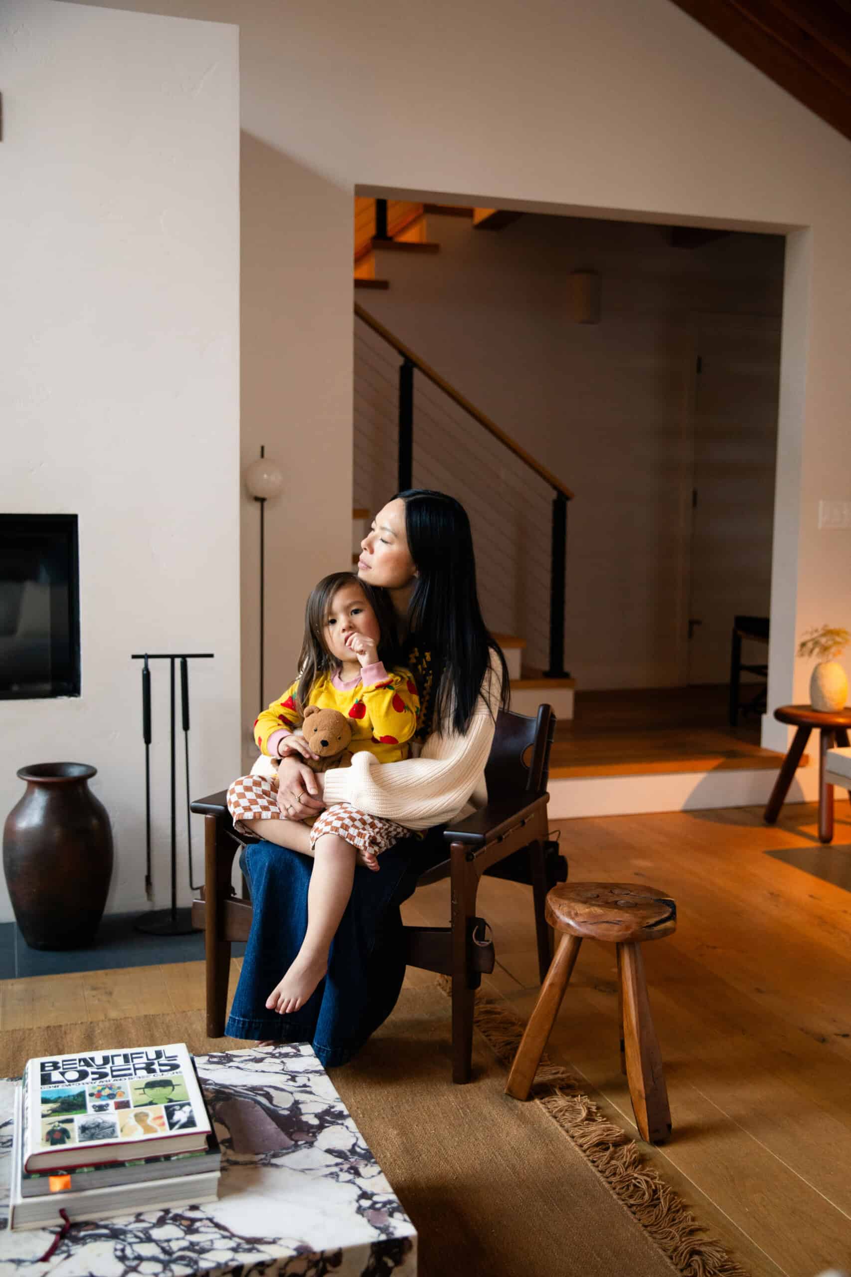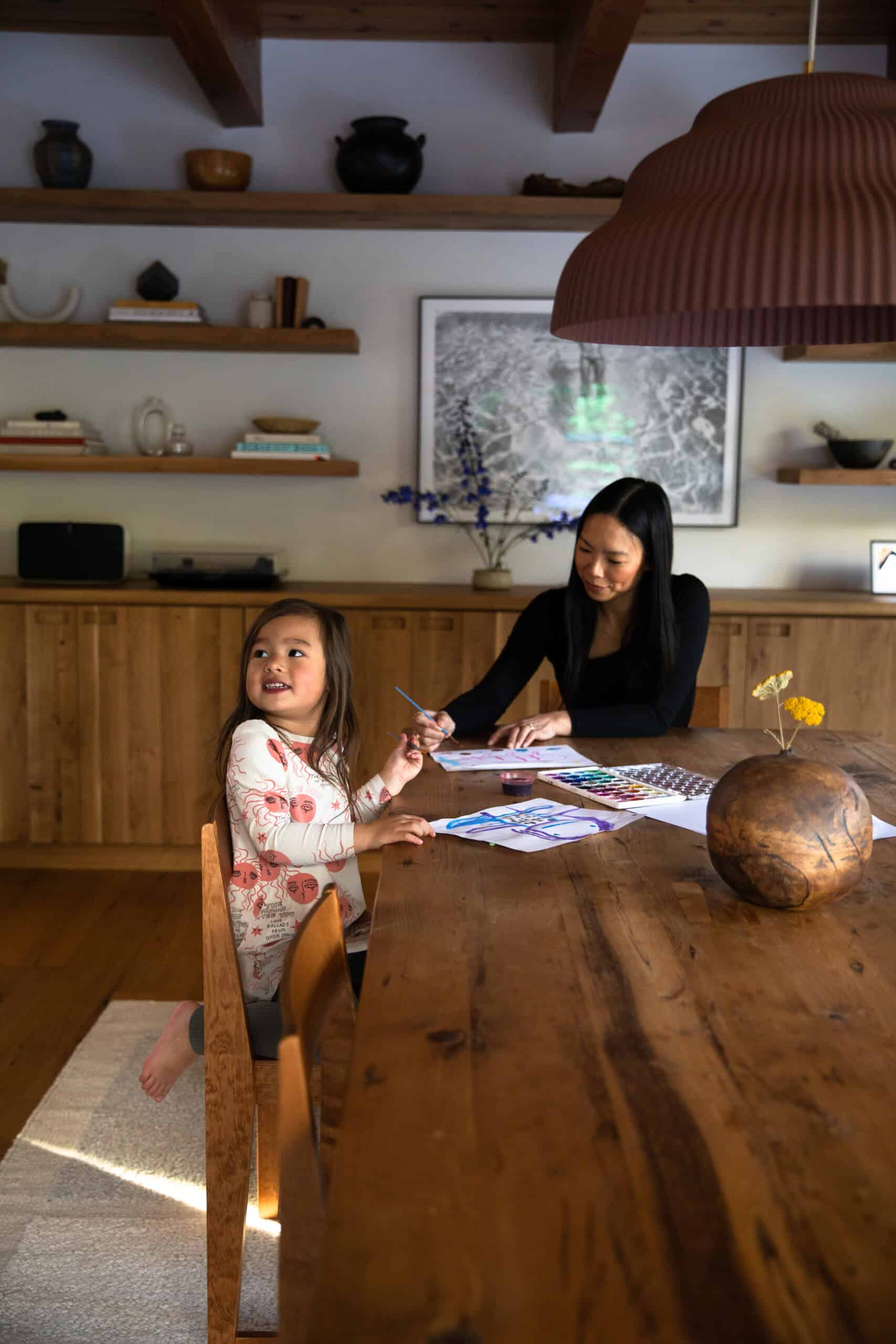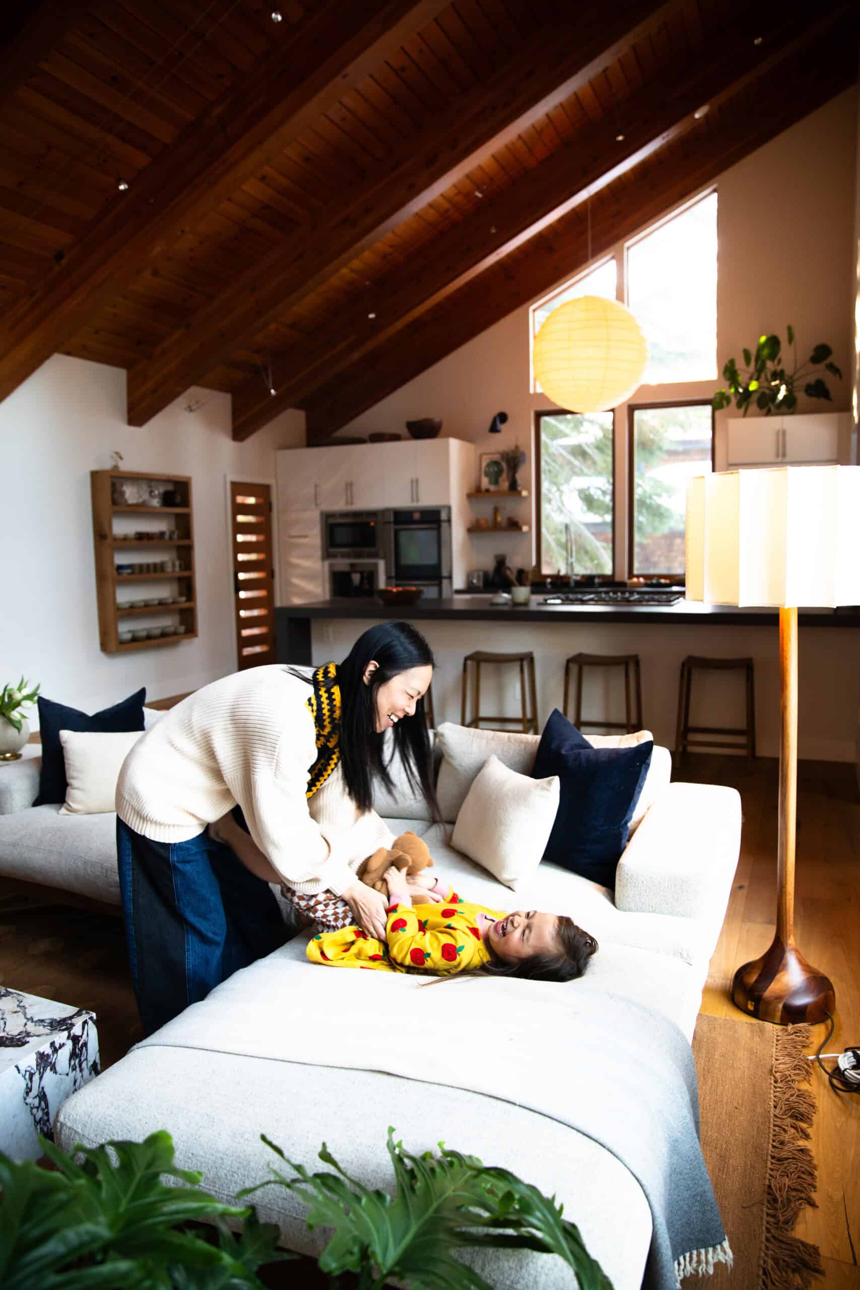 Moving from the bustle of L.A. to the rustic Tahoe area has been an ideal place for this new phase of life. When Mika, almost 5, is not at her Waldorf-style preschool, she counts the surrounding mountains and rivers as her playground. Plus, there’s the family’s absolutely stunning, cabin-like home, which you can get a complete tour of in today’s profile.