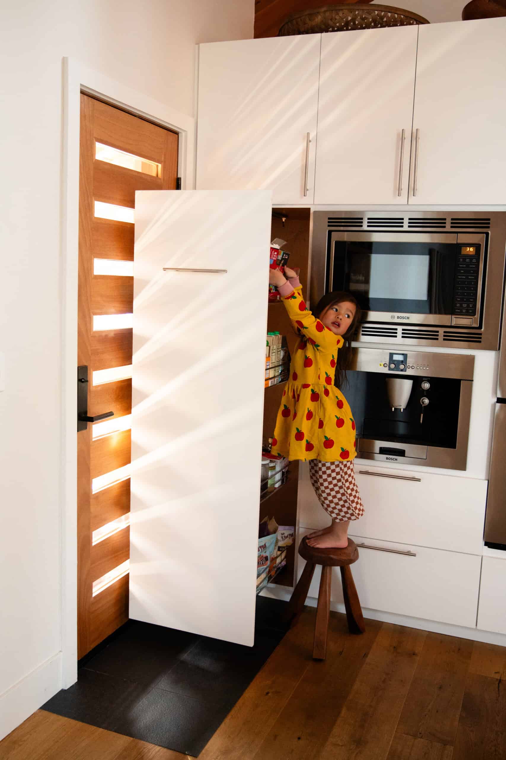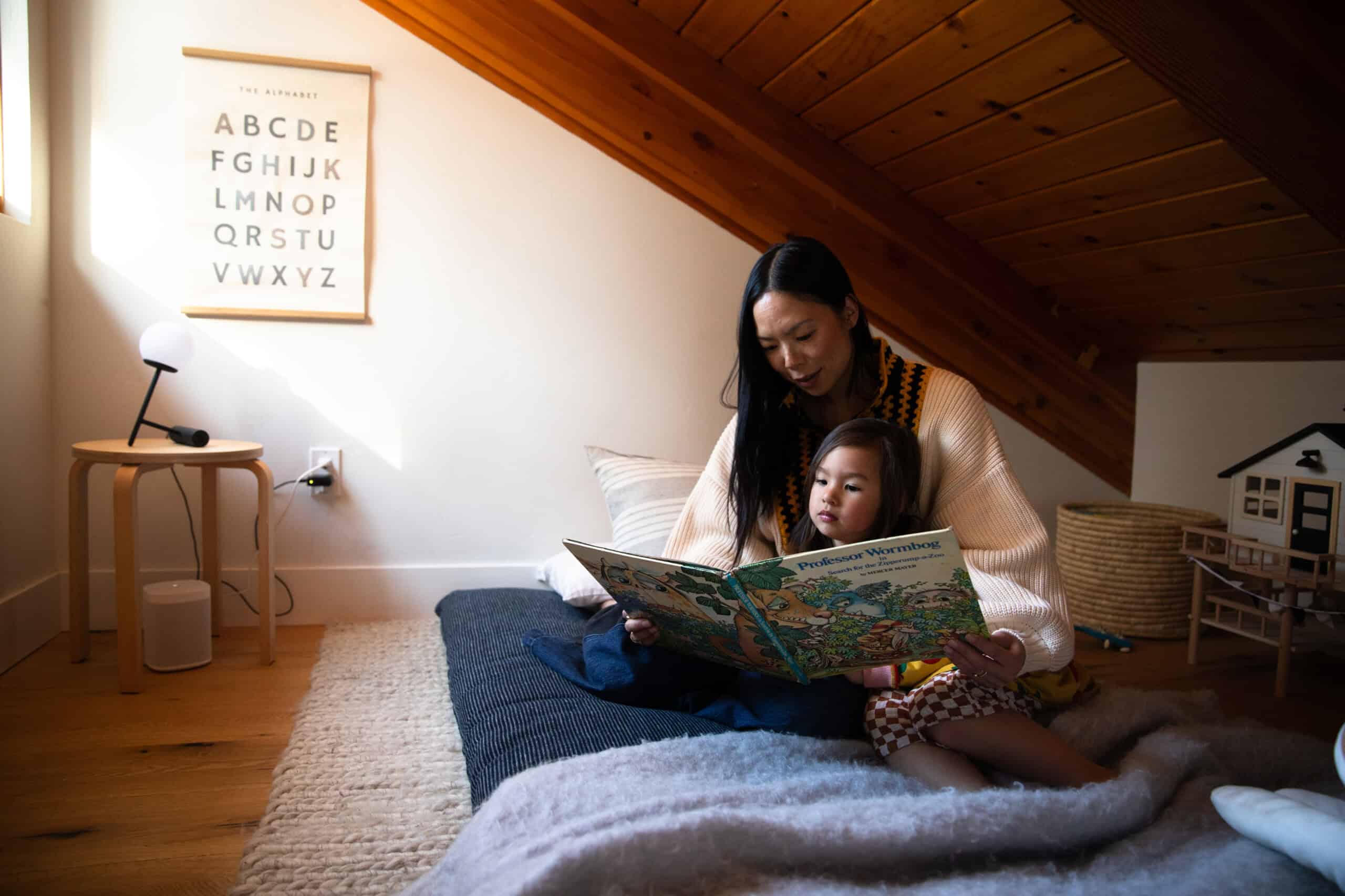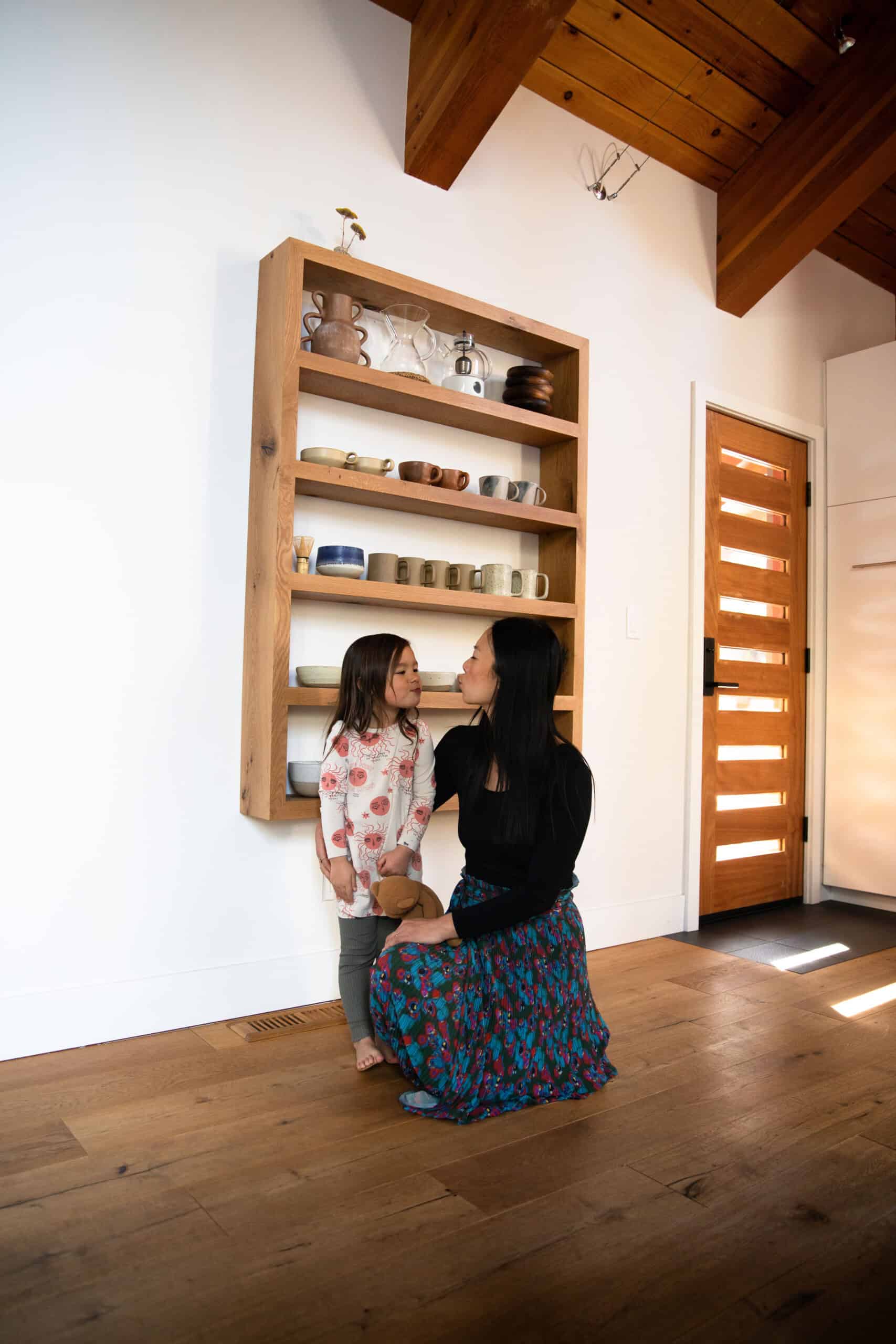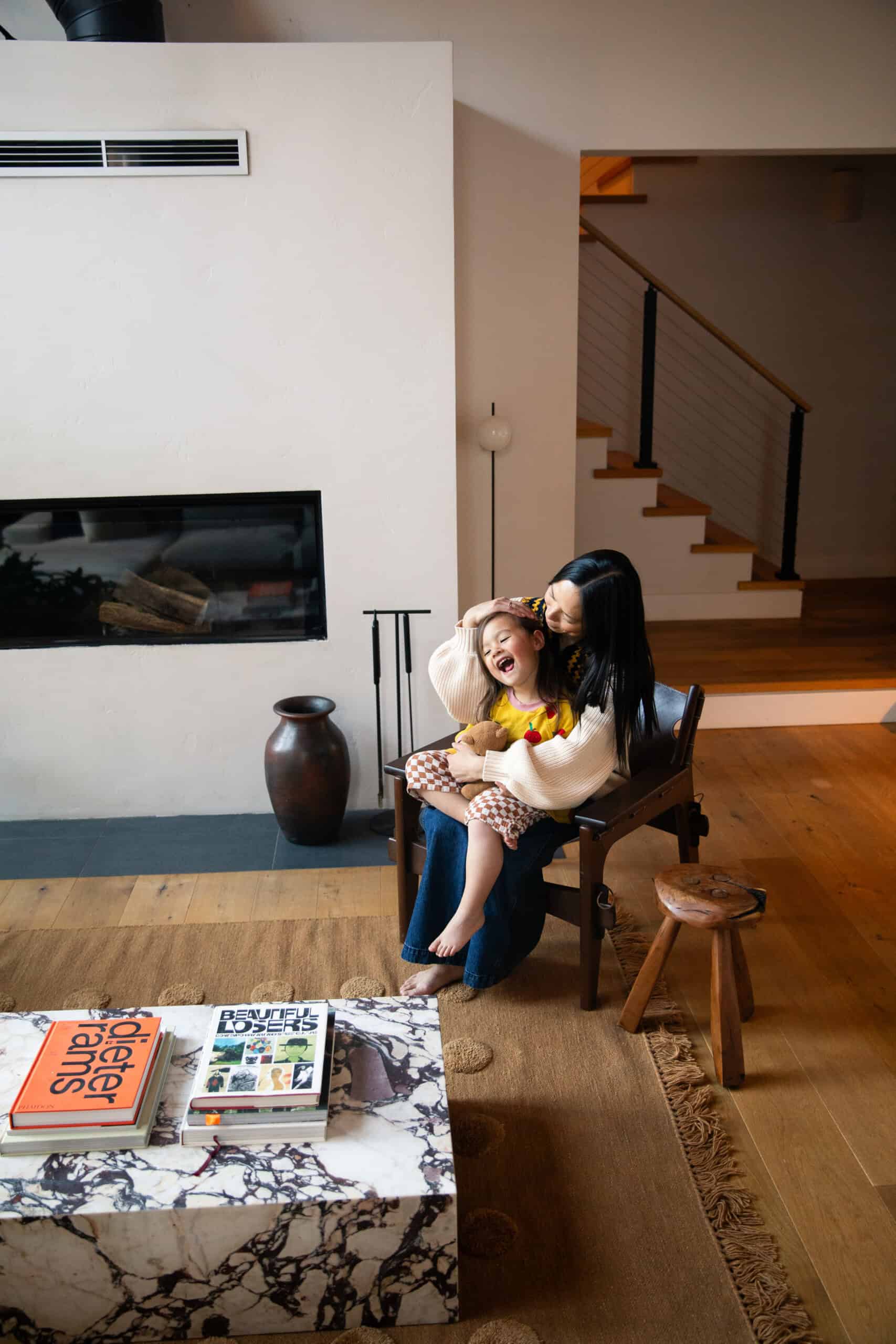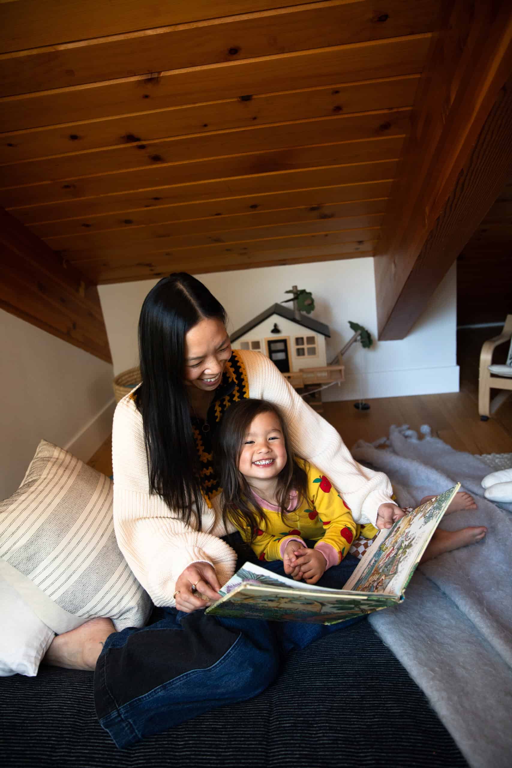 Moving from the bustle of L.A. to the rustic Tahoe area has been an ideal place for this new phase of life. When Mika, almost 5, is not at her Waldorf-style preschool, she counts the surrounding mountains and rivers as her playground. Plus, there’s the family’s absolutely stunning, cabin-like home, which you can get a complete tour of in today’s profile.