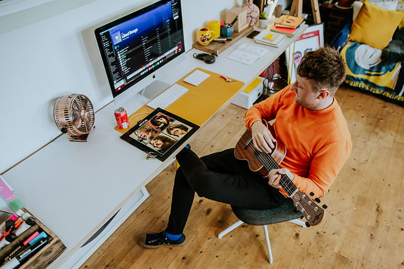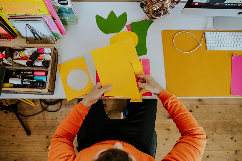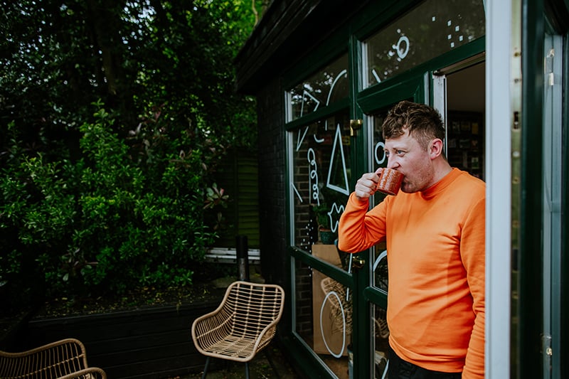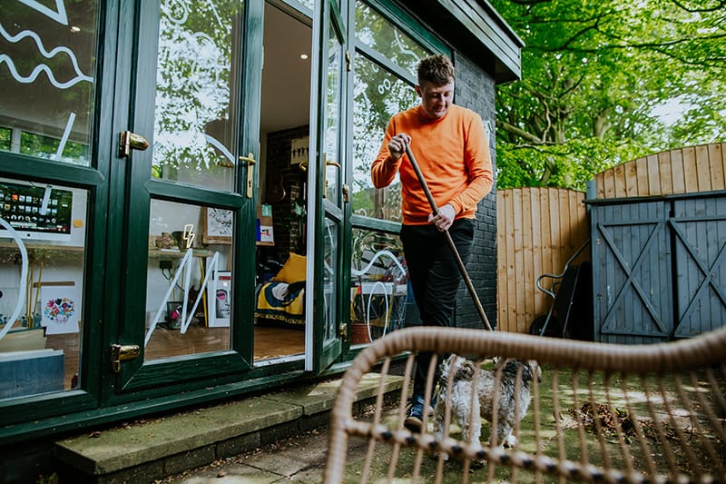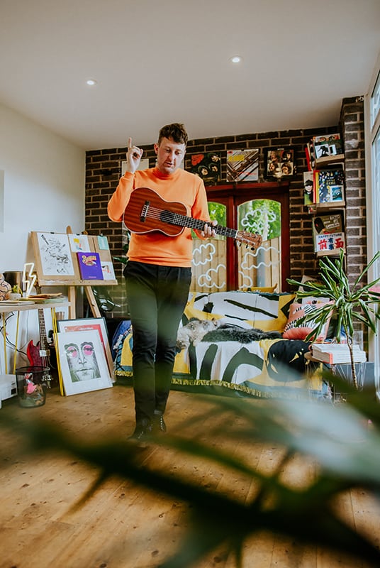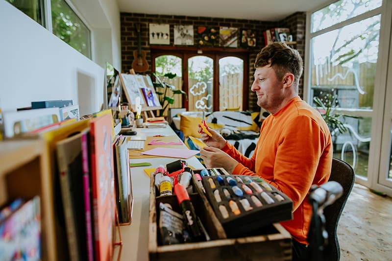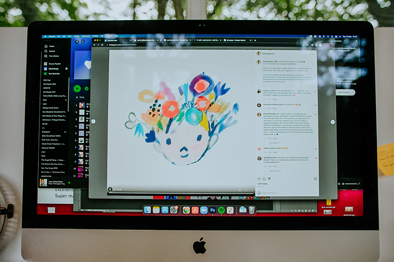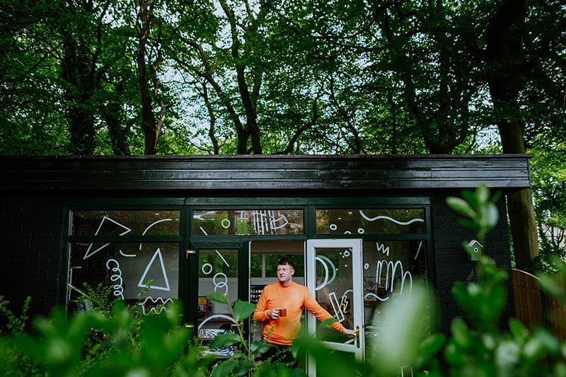 It’s been a while since we’ve visited one of our favorite kid-lit creators in their spaces. But today’s studio visit with Manchester-based author-illustrator Jarvis is certainly worth the wait. Not only are we obsessed with the U.K. creative’s new backyard space—filled to the brim with lushly illustrated kids’ books, Beatles records, and other colorful tools of the trade—we’re equally enamored with his stunning new picture book, The Boy With Flowers In His Hair.