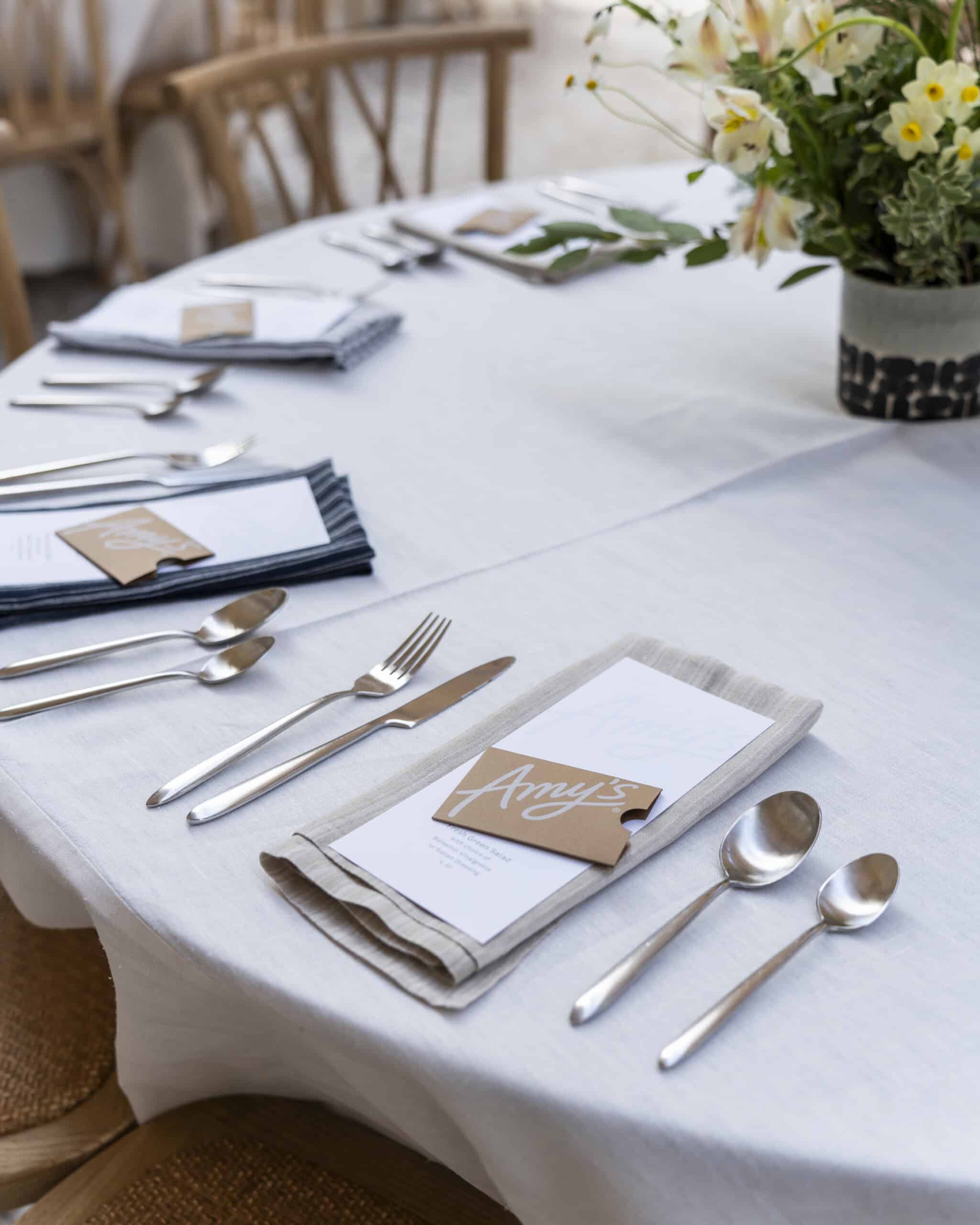 - A beautiful table setting for lunch by Amy's Kitchen.