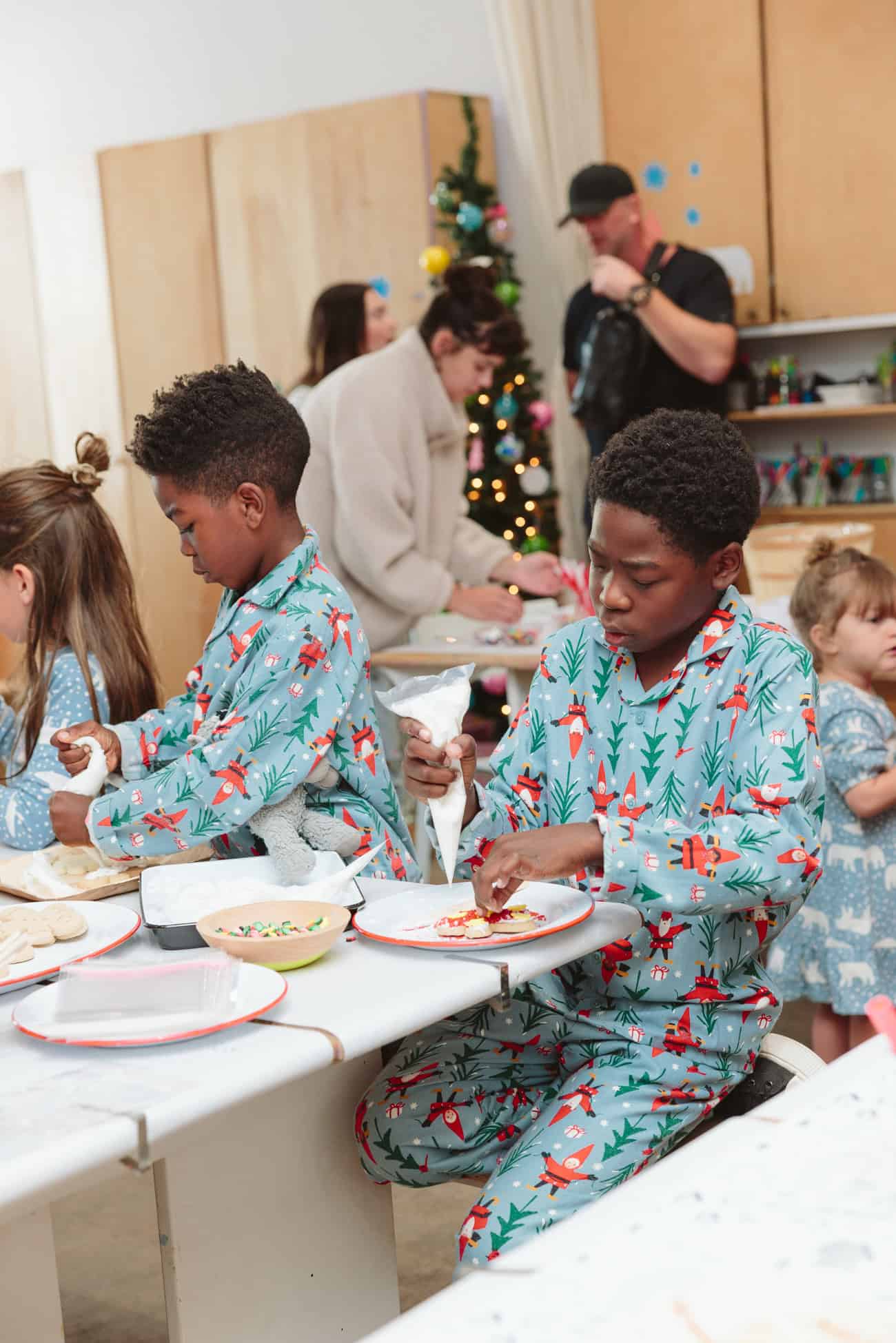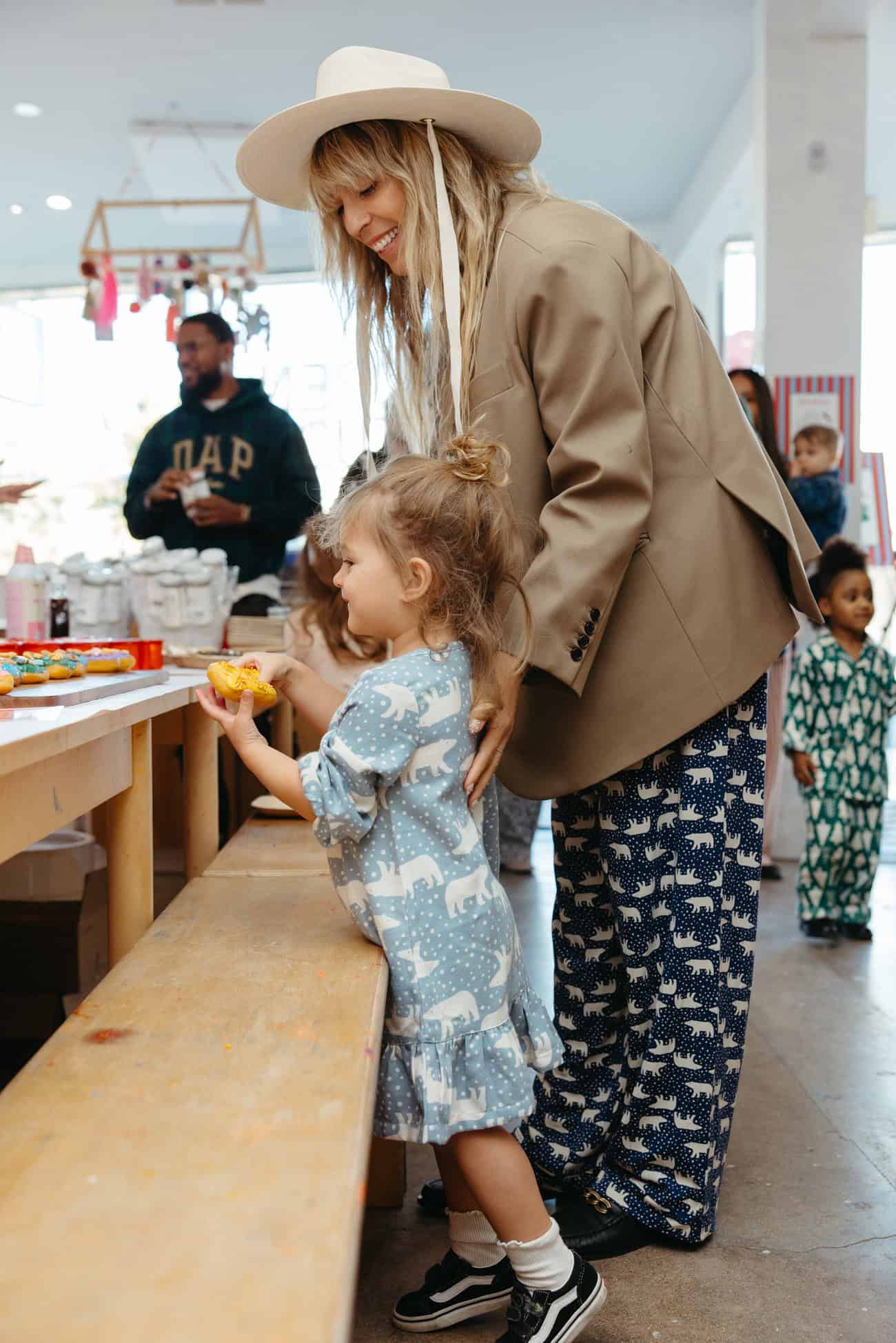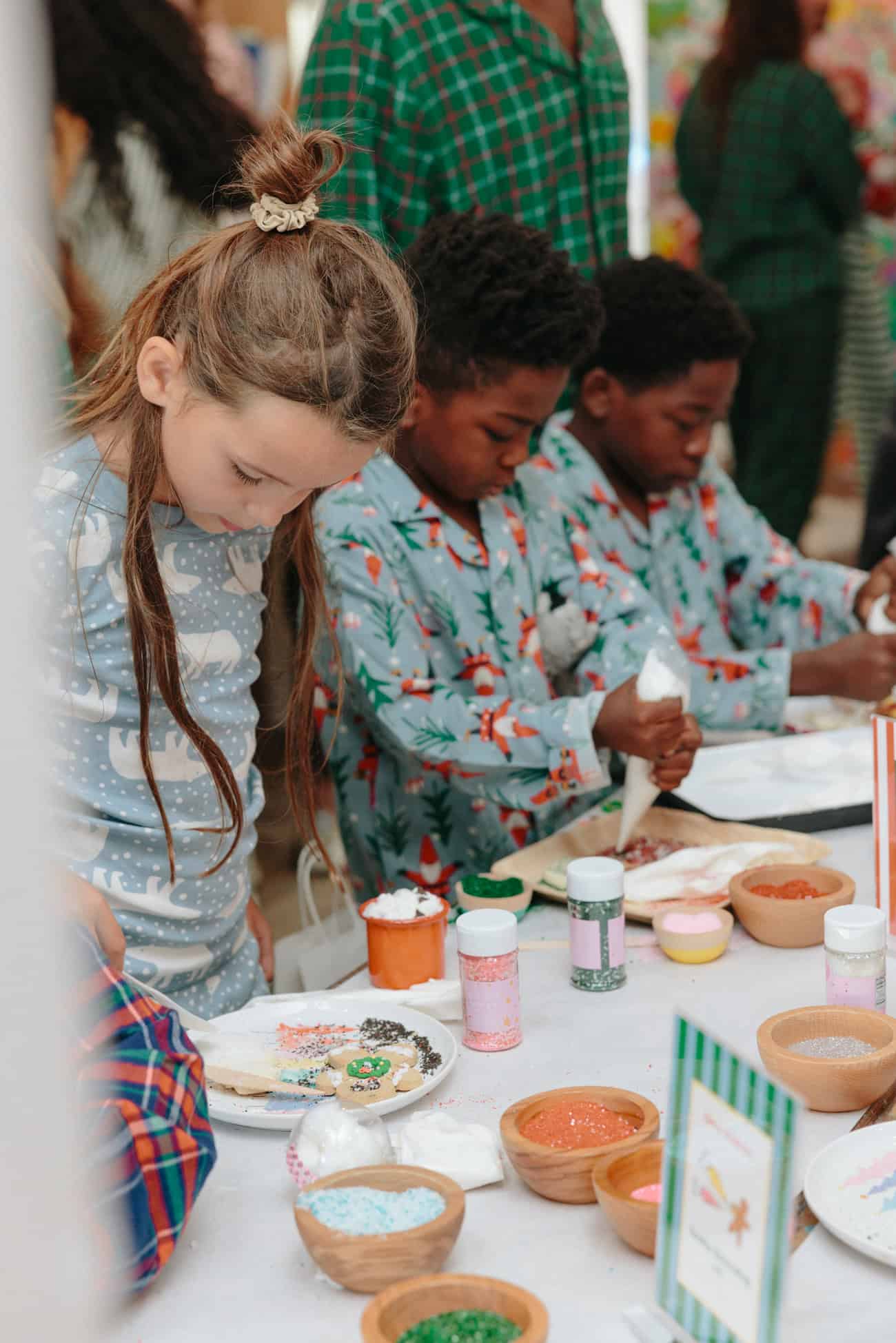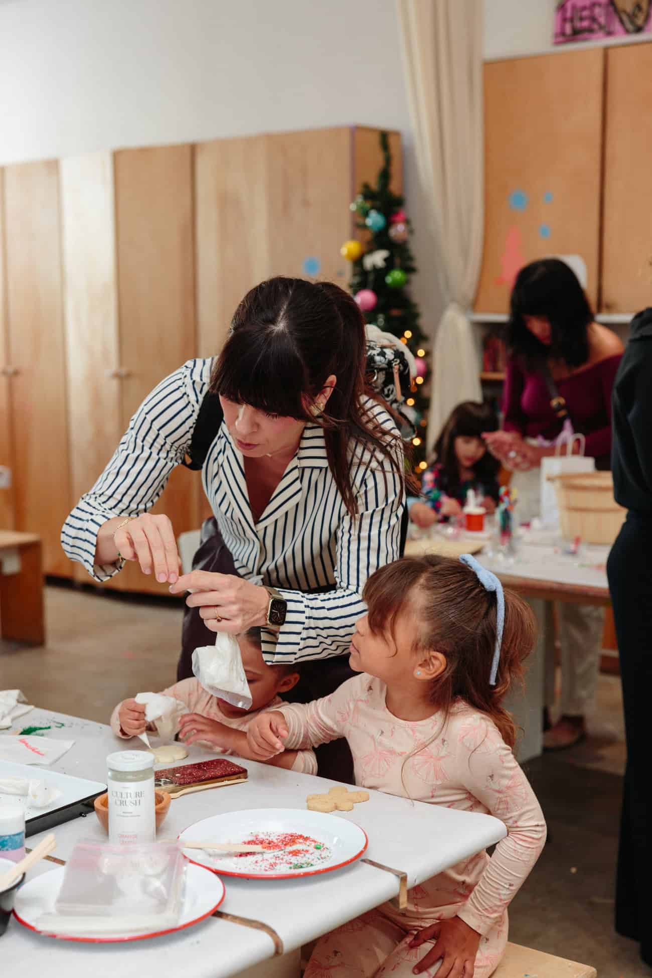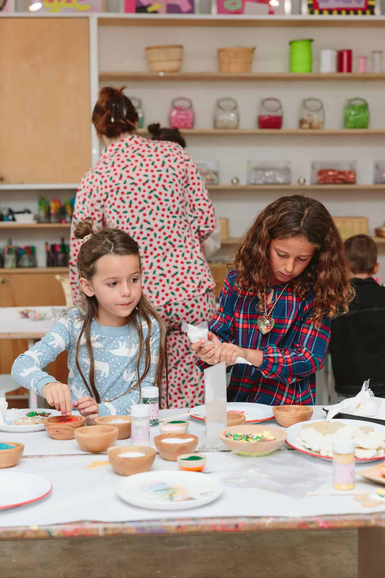 - Busy mamas and kids at the Bakery Bling cookie-decorating table.