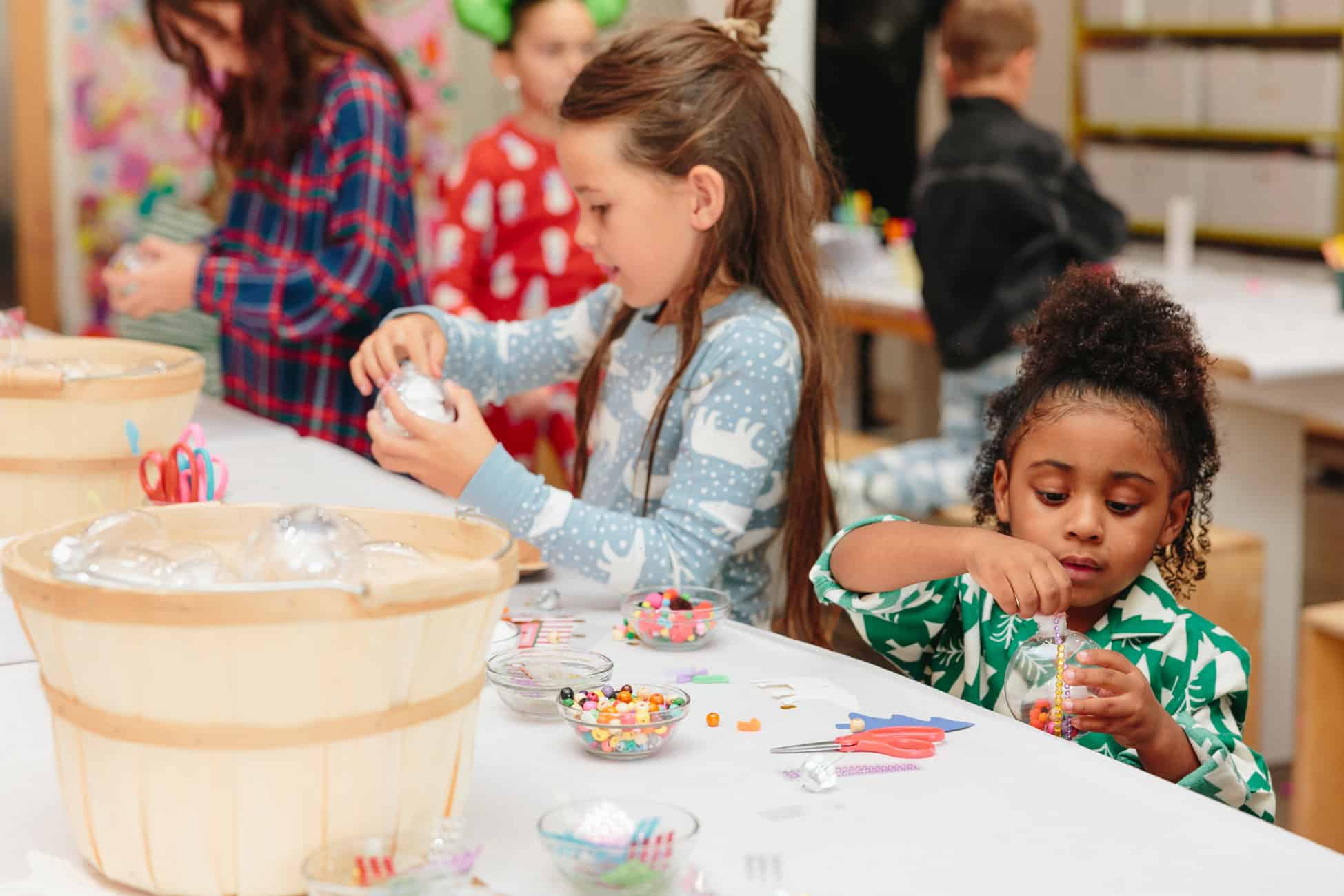 - Kids filled their glass ornaments with fuzzy balls and beads and bedazzled the exterior.