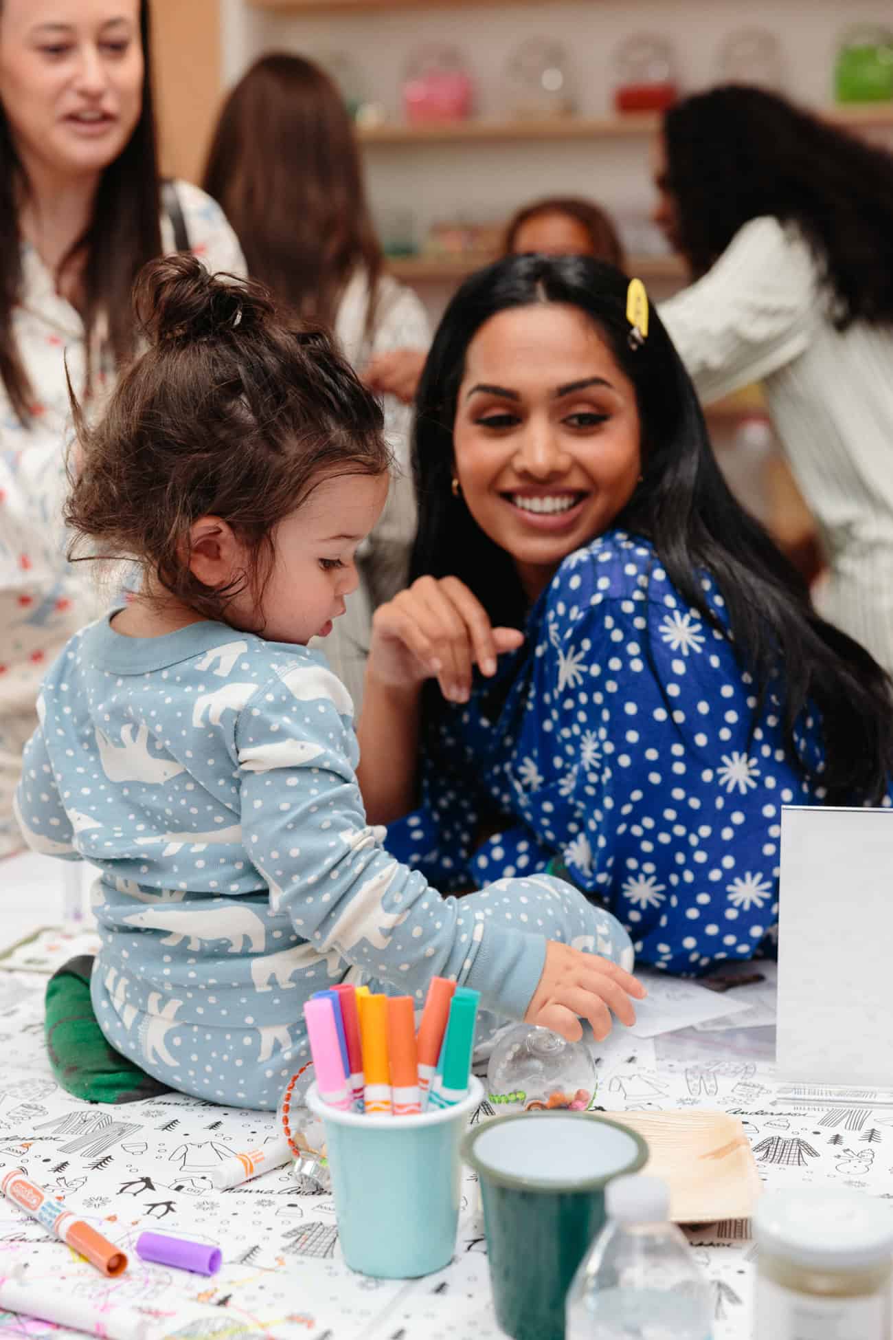To celebrate the holiday season, dozens of lucky mamas, papas, and kiddos joined Hanna and MOTHER for a festive fête sporting their mix & match Hanna Andersson pajamas.