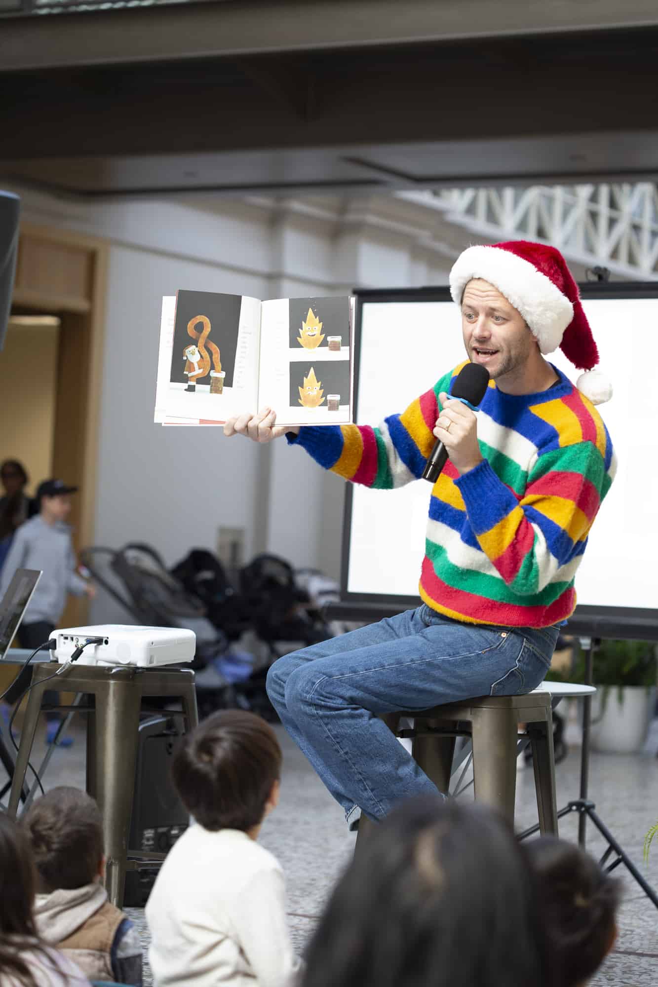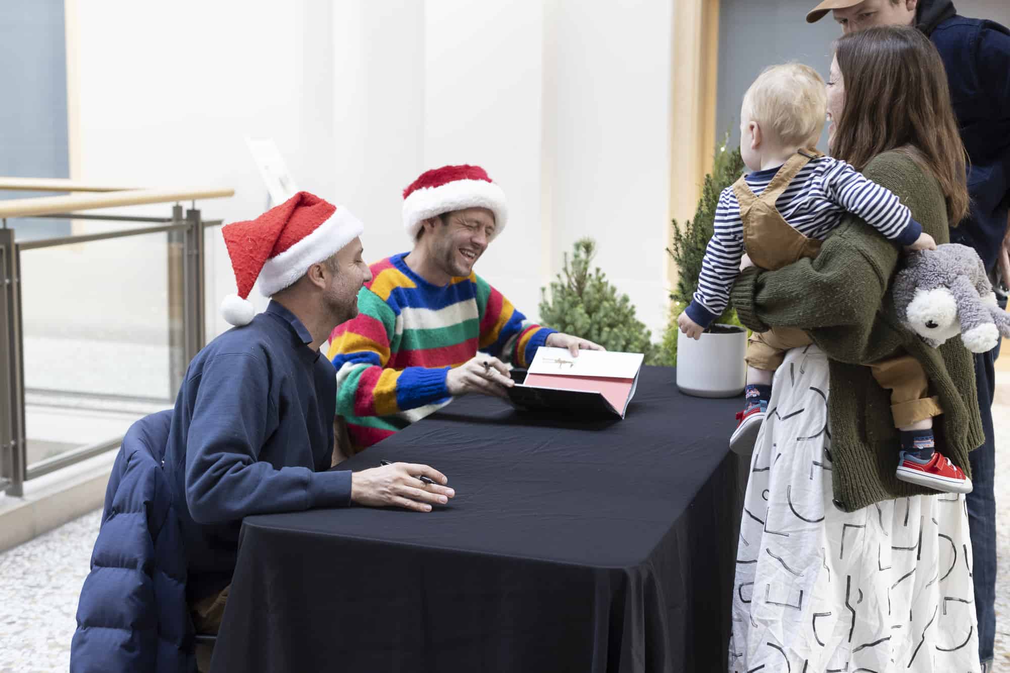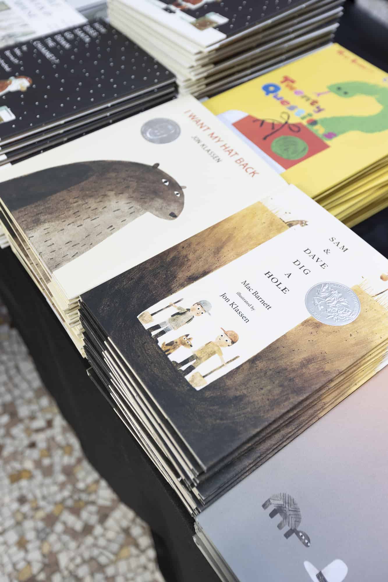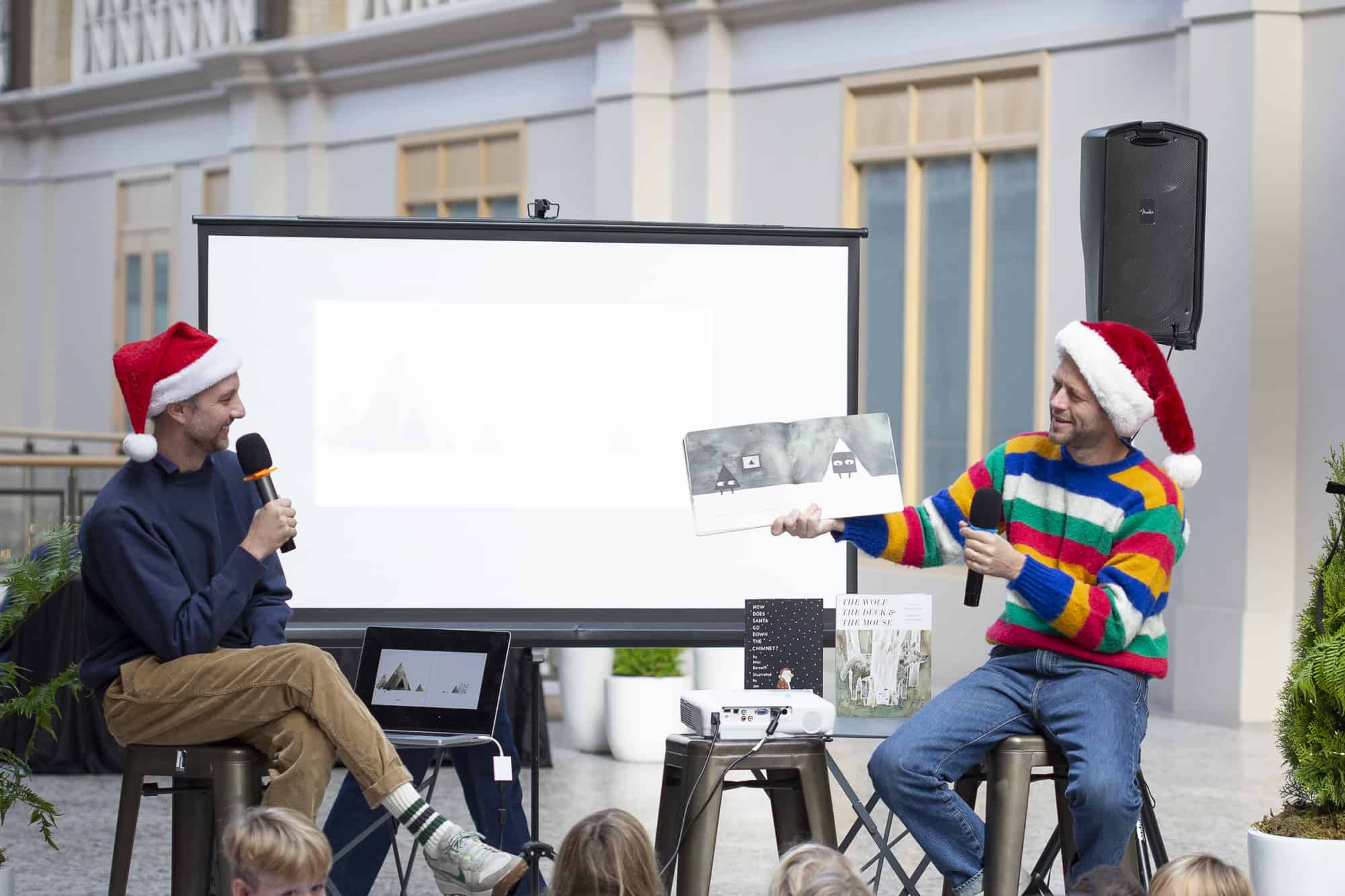 We did it again! Our second-ever Family Fun Day at San Francisco’s iconic Ferry Building was a success! In no small part due to our co-hosts, the kid-lit power duo Jon Klassen and Mac Barnett, who led a read aloud of some of their most beloved titles, including their brand-new co-creation, How Does Santa Go Down The Chimney?.