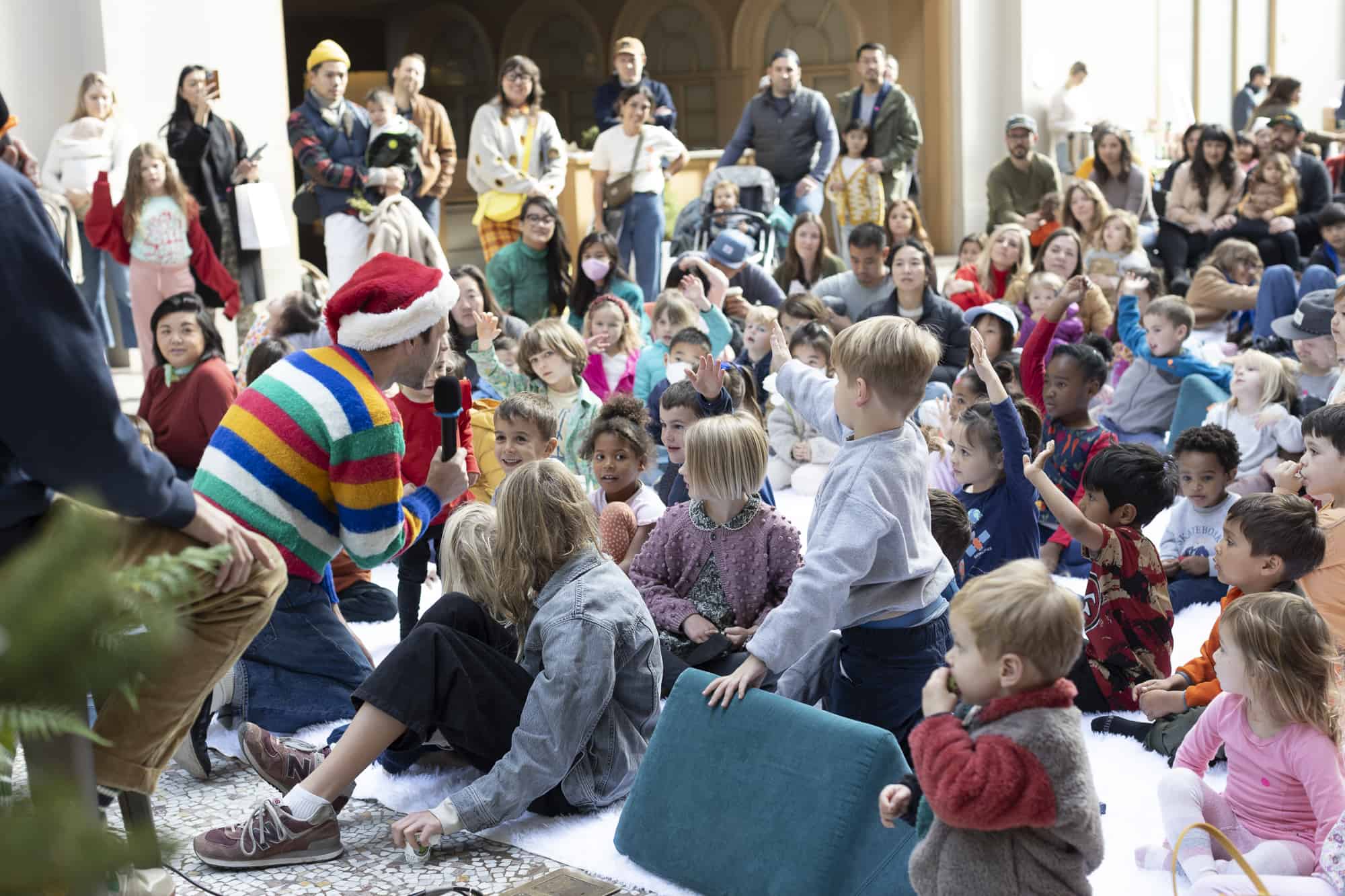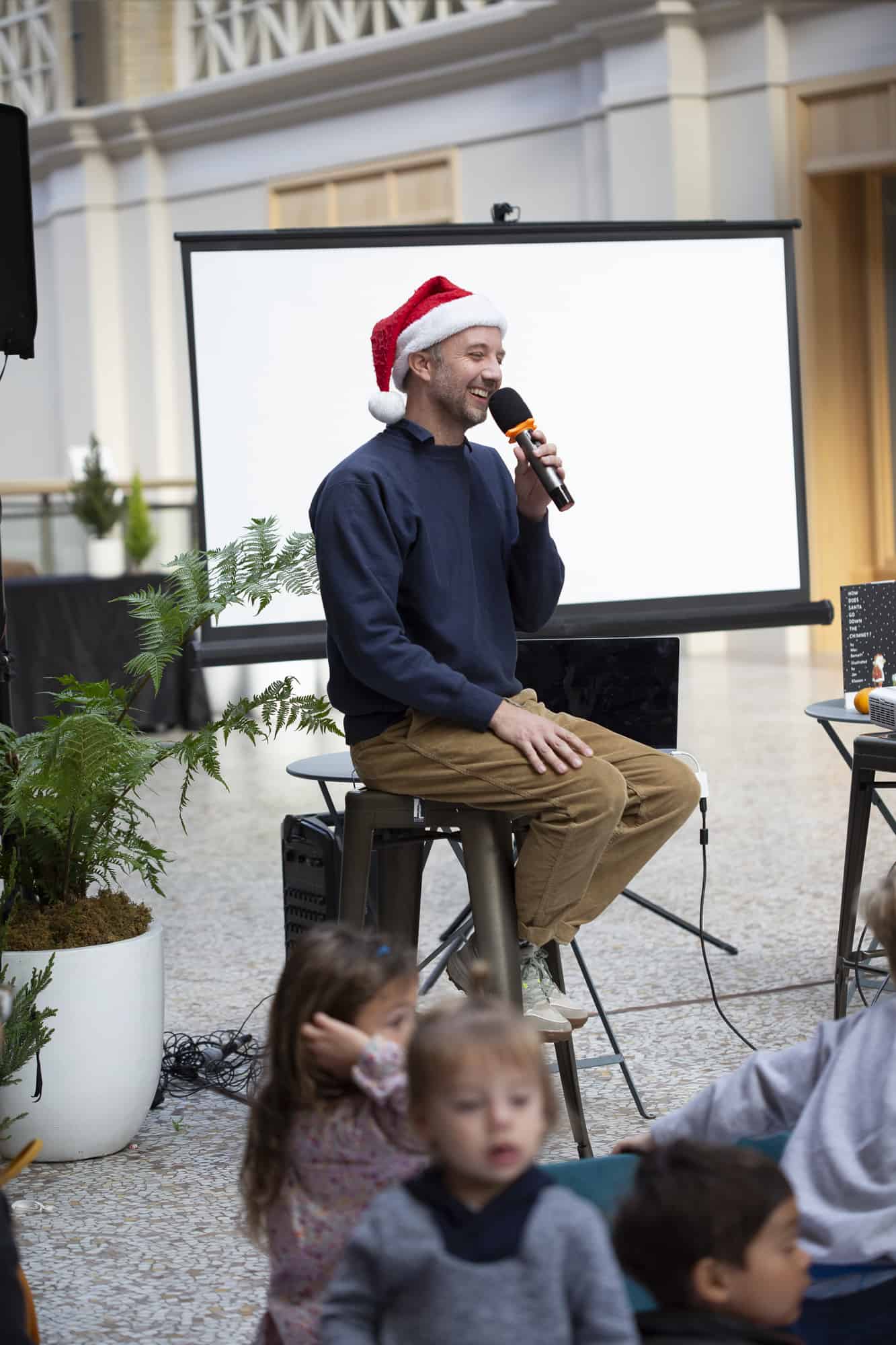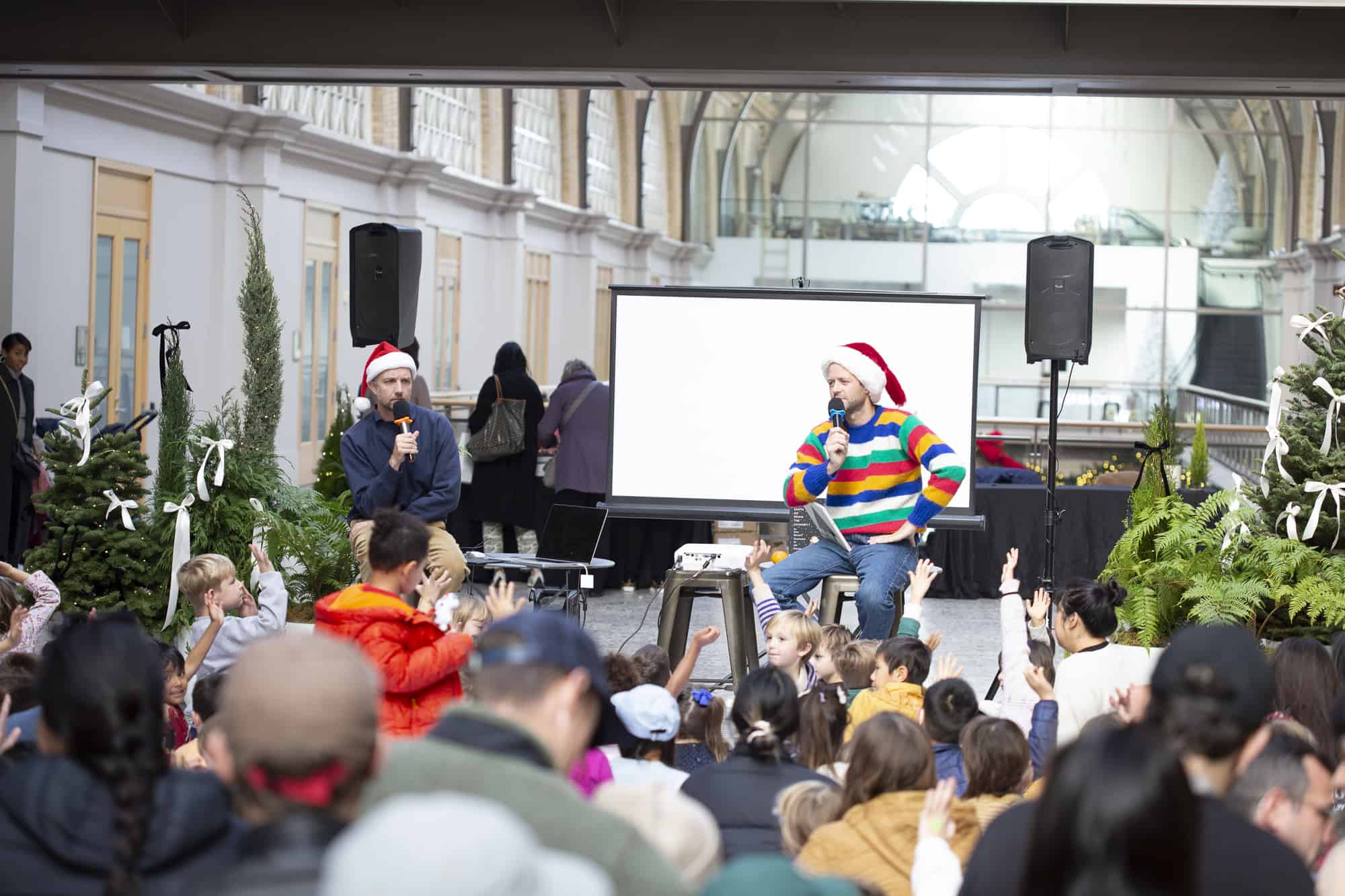 We did it again! Our second-ever Family Fun Day at San Francisco’s iconic Ferry Building was a success! In no small part due to our co-hosts, the kid-lit power duo Jon Klassen and Mac Barnett, who led a read aloud of some of their most beloved titles, including their brand-new co-creation, How Does Santa Go Down The Chimney?.