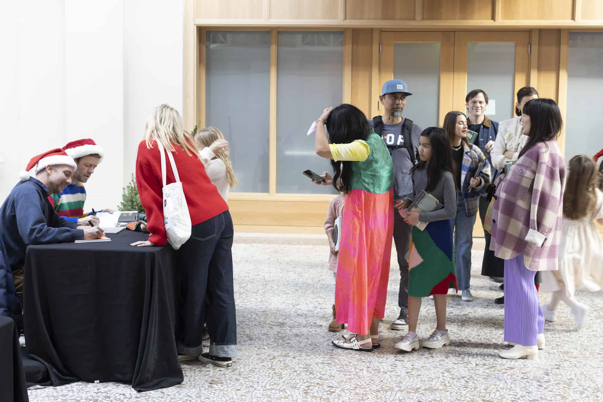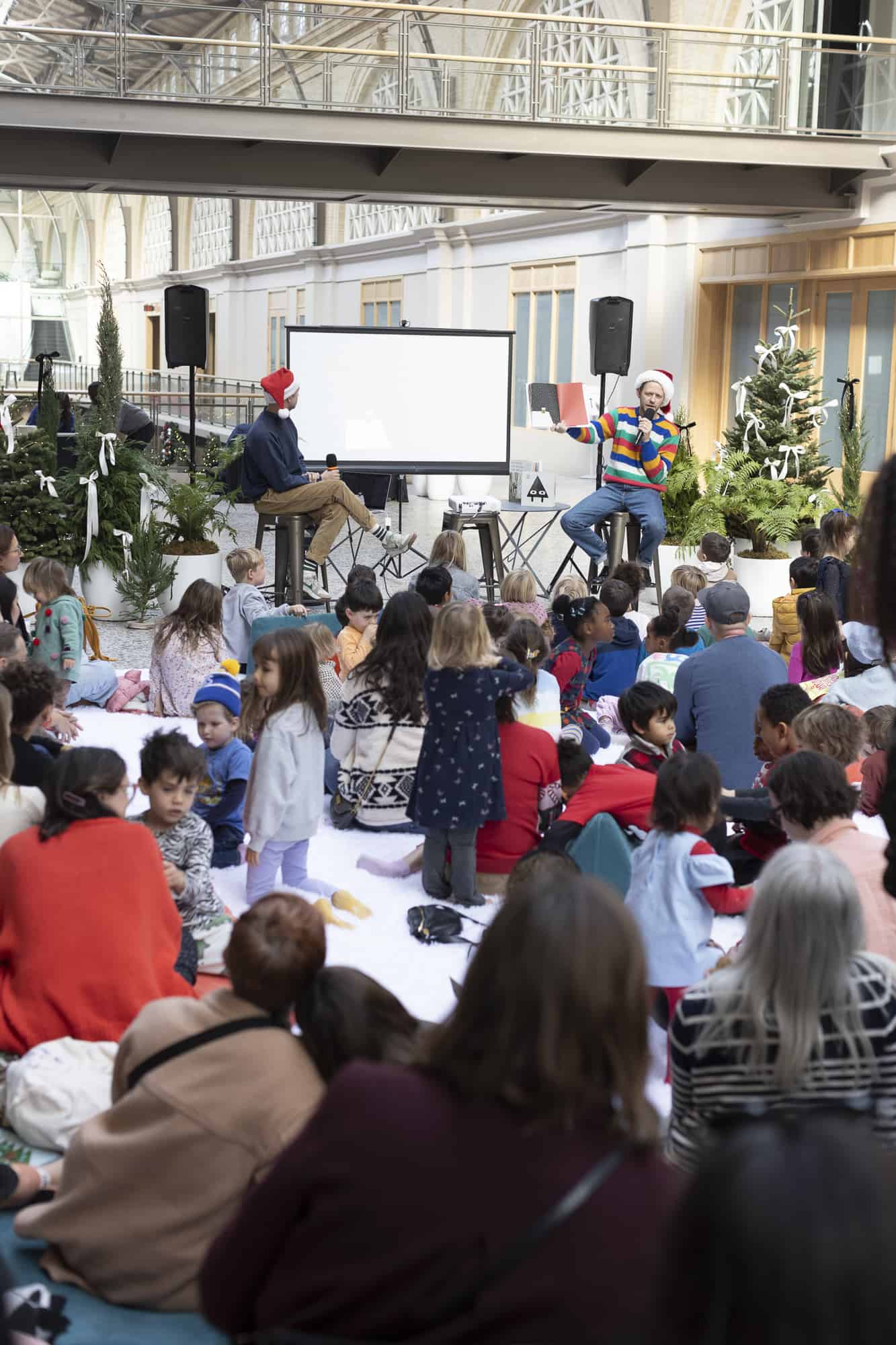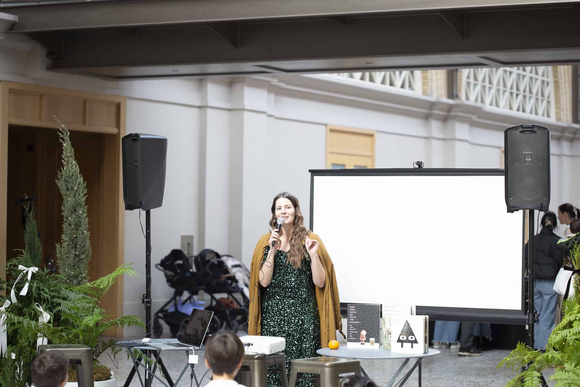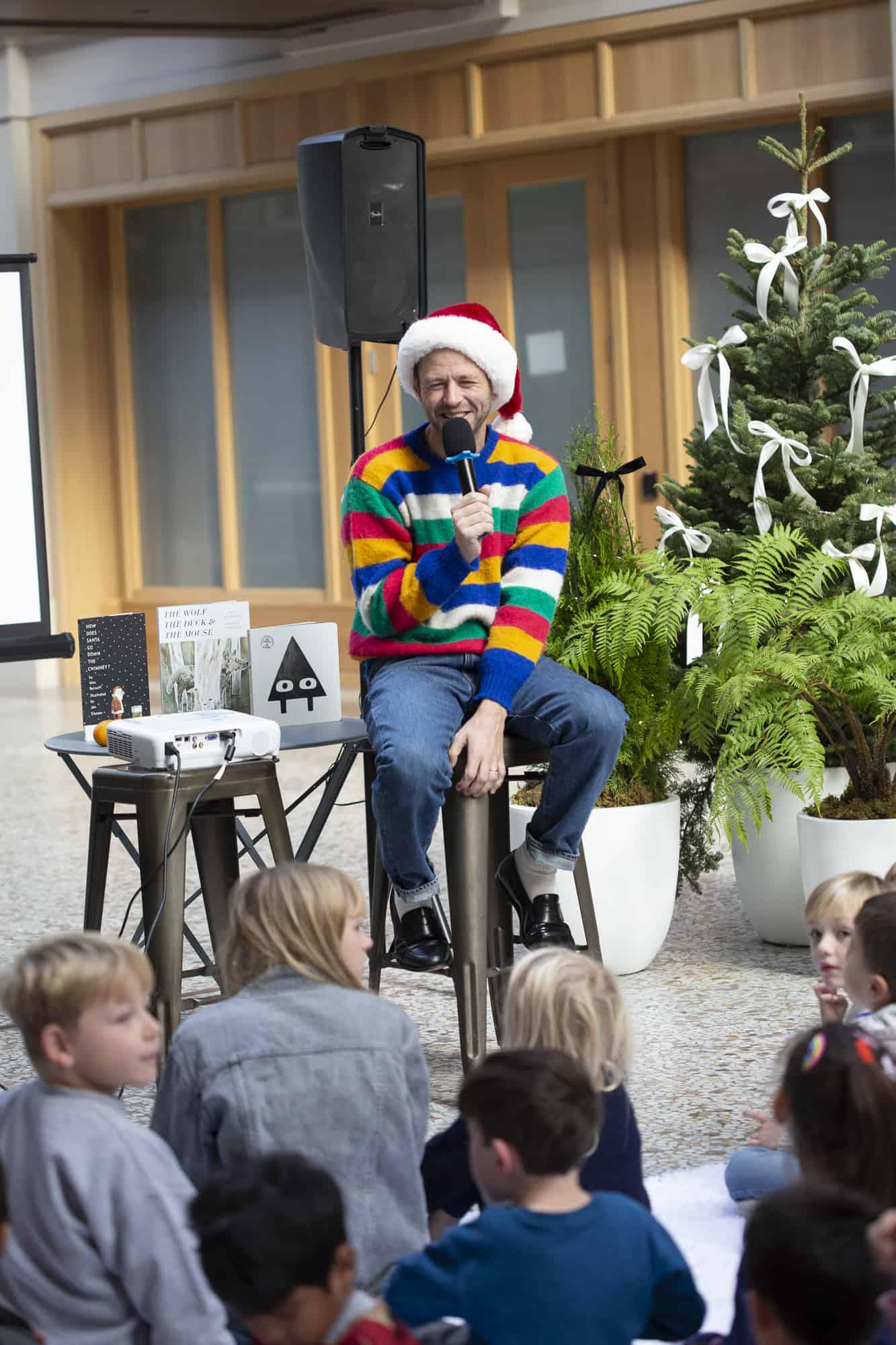 We did it again! Our second-ever Family Fun Day at San Francisco’s iconic Ferry Building was a success! In no small part due to our co-hosts, the kid-lit power duo Jon Klassen and Mac Barnett, who led a read aloud of some of their most beloved titles, including their brand-new co-creation, How Does Santa Go Down The Chimney?.